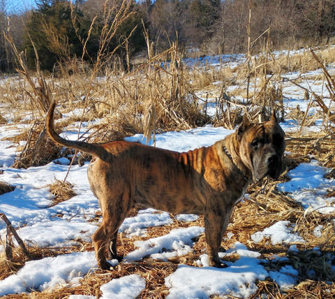 Since Aruco is such a great mix of famous Spanish Champions, he is a very correct Presa Canario, a direct representative of the breed standard. We look forward to using him exclusively for our program here. Stay tuned, as his career is just getting started.